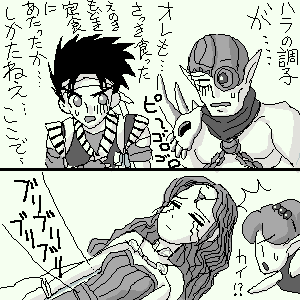 SaGaの絵描くならばモノクロだろ! と思って描き始めてみたものの、モノクロ絵師 の方々の凄みを実感することになりました。 しかし、引っ張り出したパッケ絵見たら、 人間男ってすごい逆毛っぷりだったのですねぇ。